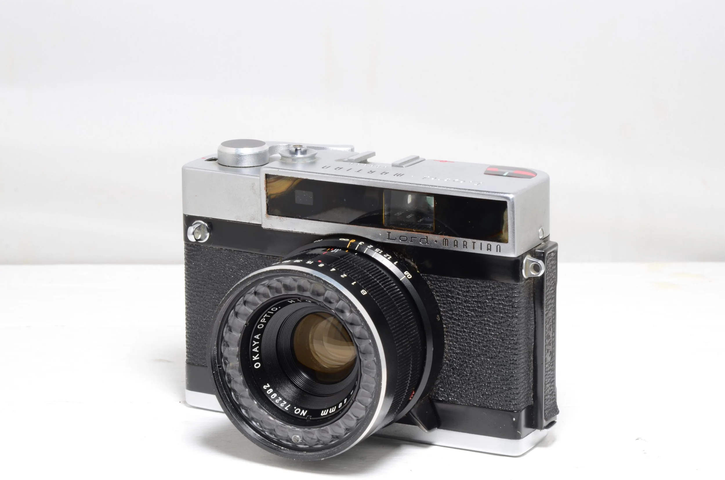 With a name straight out of Science Fiction, the Lord Martian is a 35mm range finder made by Okaya Kōgaku Kikai K.K. Japan in 1960. It is a boxy, but stylish camera - I really do like the design!